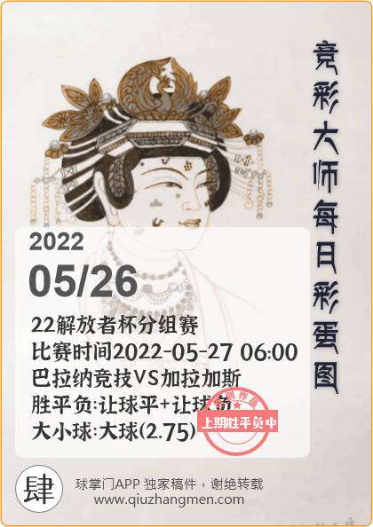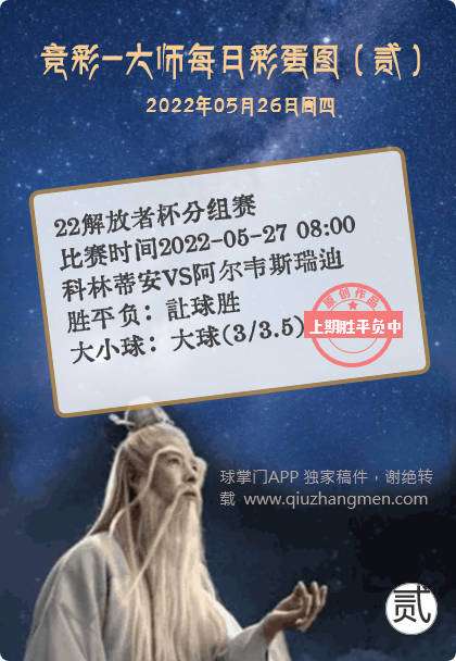 竞彩大师每日彩蛋图 2022年5月26日 周四