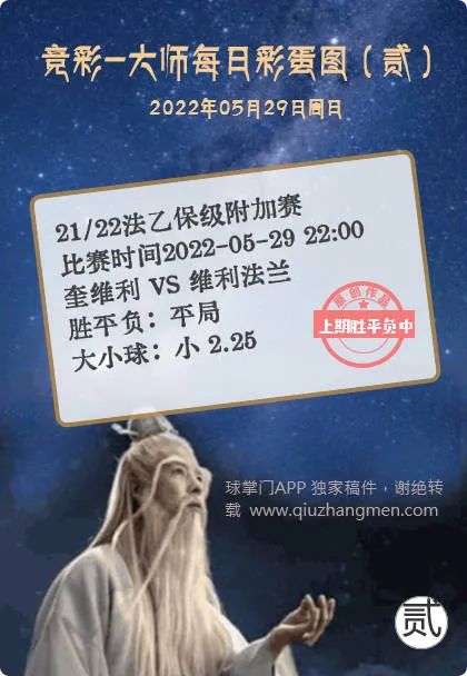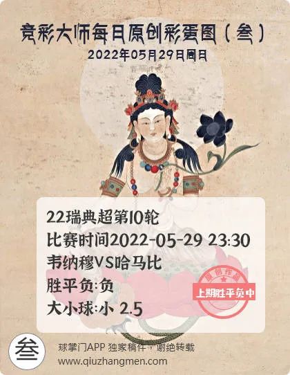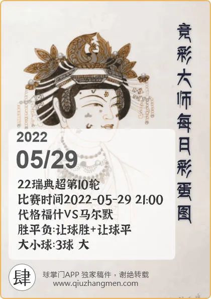 竞彩大师每日彩蛋图 2022年5月29日 周日