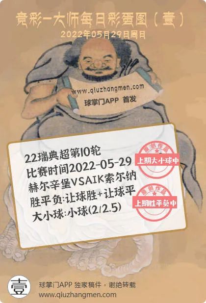 亚盘大师每日彩蛋图 2022年5月29日 周日(壹)
