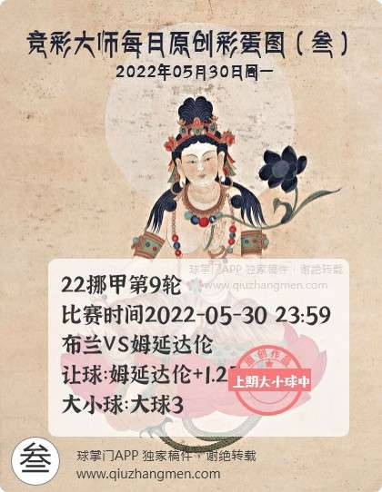 竞彩大师每日彩蛋图 2022年5月30日 周一