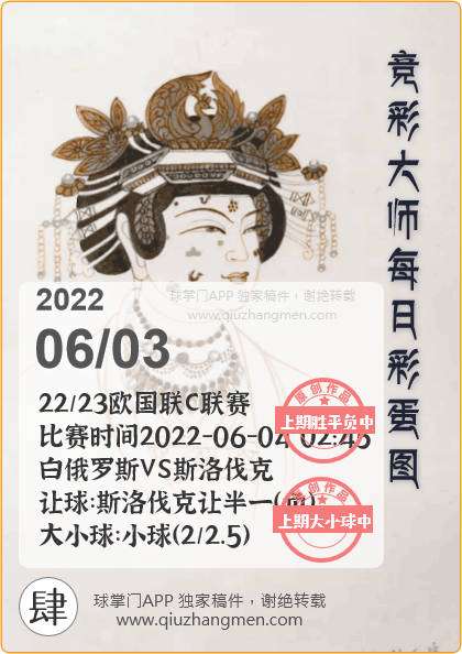竞彩大师每日彩蛋图 2022年6月3日 周五