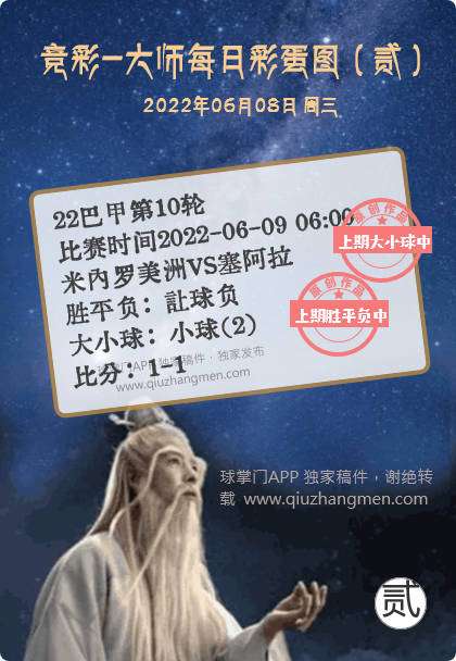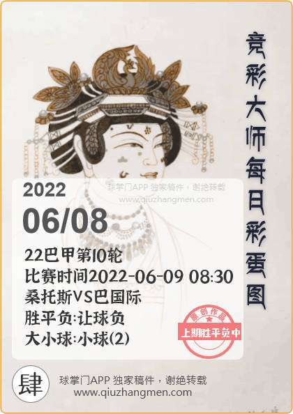 竞彩大师每日彩蛋图 2022年6月8日 周三