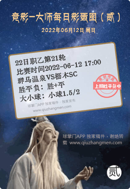 竞彩大师每日彩蛋图 2022年6月12日 周日