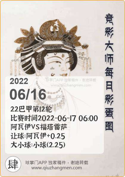 亚盘大师每日彩蛋图 2022年6月16日 周四(壹)