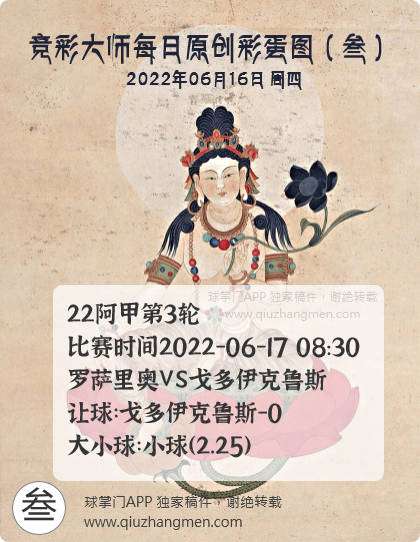竞彩观音每日彩蛋图 2022年6月16日 周四