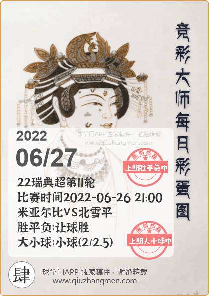竞彩大师每日彩蛋图 2022年6月27日 周日