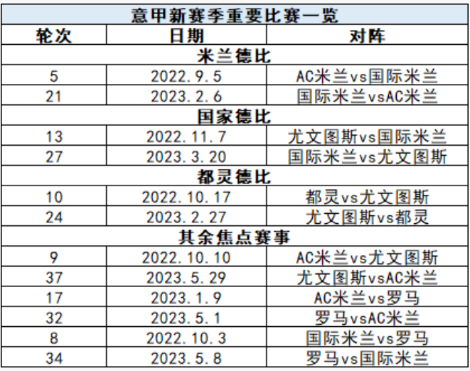 22-23赛季意甲联赛将于今年8月14日拉开大幕,并将于明年6月4日完成收官,期间持续294天的时间。间歇期方面,意甲联赛将于第15轮(11月13日)后迎来间歇期,重启时间在2023年1月4日,休战时间同样达到52天。