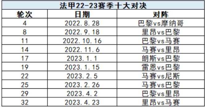 法甲新赛季首轮确定于8月5日-7日的周末开启,第15轮后(11月11日-13日)进入世界杯休赛期,第16轮重启时间12月28日,预计将休战45天的时间。收官战时间为2023年6月3日星期六,整个赛季进行超300天。
