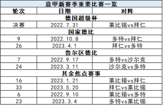 新赛季德甲联赛将于8月5日开启,揭幕战由卫冕冠军拜仁慕尼黑客场挑战法兰克福。由于冬歇期的存在,德甲联赛是五大联赛休战时间最久的,自22年11月14日起到来年的1月19日,长达66天。最后一轮将于5月27日进行,是五大联赛中最早收官的。
