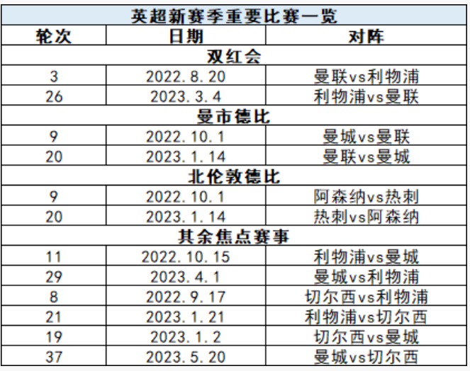 首页/ 赛事正文22-23赛季英超联赛将于8月6日拉开大幕