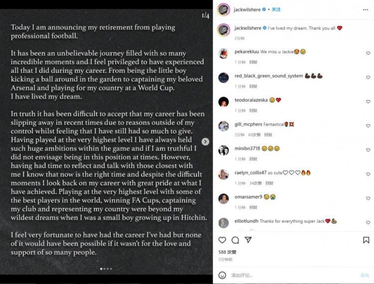 首页/ 赛事正文球掌门7月8日获悉,30岁的前阿森纳中场威尔希尔在社媒宣布正式退役。