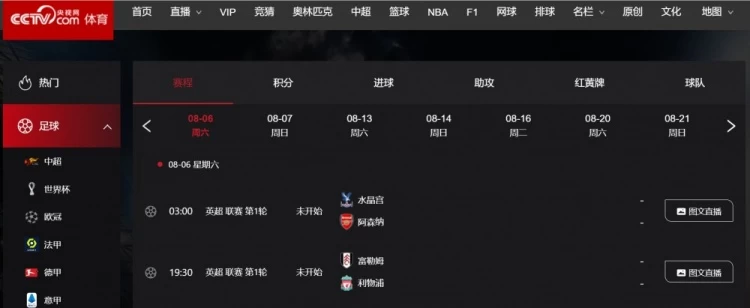 球掌门7月11日获悉,体育大生意独家获悉,央视获得英超新赛季版权。在央视官网节目单上,已经出现了新赛季英超的转播预告。