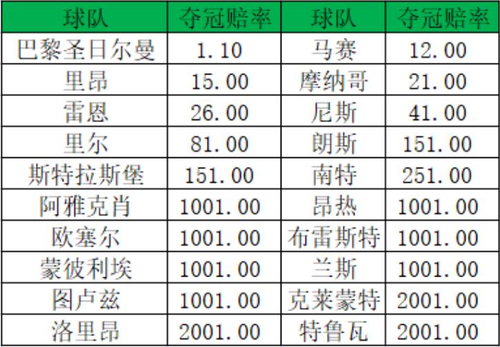 法甲夺冠赔率: