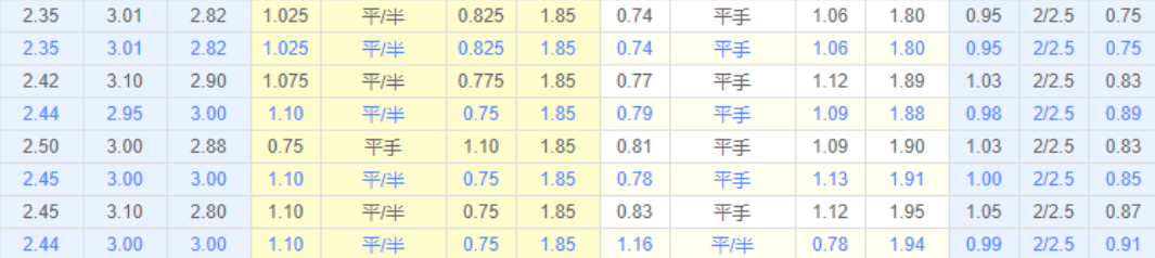 从上可以看出初始数据对两队没啥倾斜的,对主队的态度也非常一般。两队都是升班马,特别神奇的是两队一个战胜去年的联赛冠军波尔图,一个战胜了前年的联赛冠军里斯本竞技,而且都是以2球的优势拿下比赛胜利。