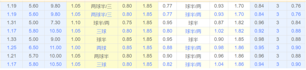 让步力度的话转亚洲数据1.75球,挺正的,各市场数据没太大的差异,进球数3球左右,综上所述。