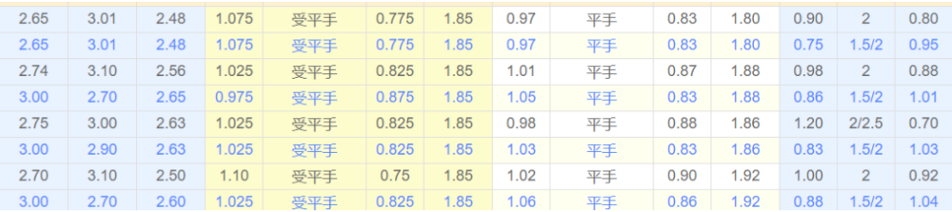 本场数据上看出客场龙的熊本让平手,千叶市原对阵往绩近10次取得5胜2平3负的战绩稍稍占优。客队熊本近5场4胜1平状态火热,客场成绩联赛第2.初始让步力度偏弱几乎没有给到支持,后续也没有加强对熊本的支持力度。市场态度很明确并不看好客队全取三分,进球数有所衰减。