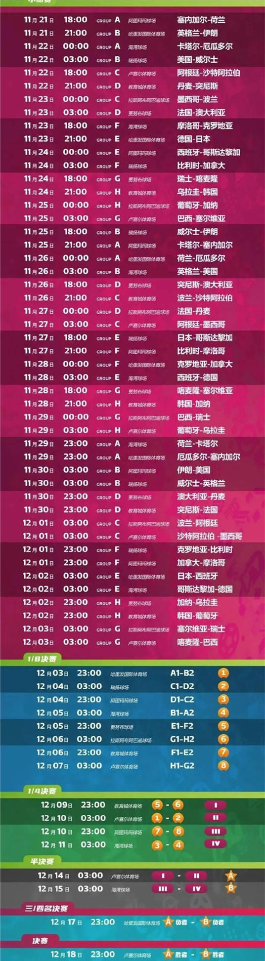 2022年卡塔尔世界杯将于2022年11月21日至12月18日举行。揭幕战将于2022年11月21日开始,决赛将于当地时间12月18日下午18: 00在Lourseyre体育场举行。这将是历史上首届在冬季举行的世界杯足球赛,也是世界杯足球赛第二次在亚洲举办。