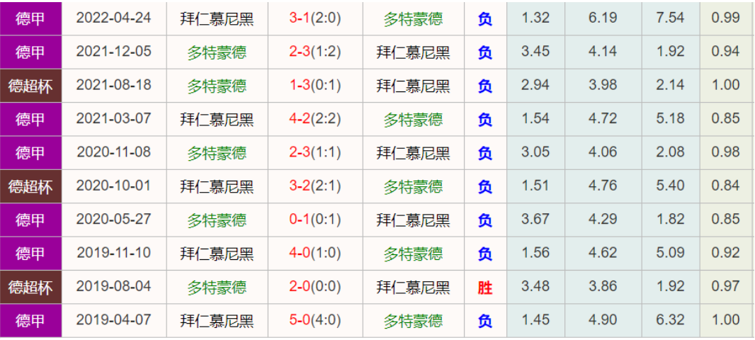 两队近十次交手中,拜仁明显占据了很强的心理优势,多特蒙德上一次赢下对手还是在19年的德国杯上,之后双方对阵的8场比赛全部败下阵来,本场比赛从初始让步上来看,各方对于拜仁的支持力度还是可见的,但并没有想象中那么热烈,后续受热影响,数据应该还会出现一定的变化,个人感觉这场比赛,不妨可以高看多特蒙德一眼,至少能够捍卫自己的主场。