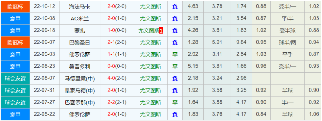 都灵本赛季开局的表现和上赛季没啥变化,还是循序渐进中规中矩。客队老妇人则像是被抽了筋一样客场软弱无力。目前联赛客场成绩2平2负毫无战斗力可言。欧冠赛场上更是1胜3负积三分几乎看不到出现希望,上轮天使迪玛利亚大腿韧带撕裂大概率又要修养4-6周,说不定会休战到世界杯。本场初始数据几乎没有给到纸面实力更强但近期状态更差的尤文图斯让步,这显然还是有点说不太过去。虽然尤文图斯近期10个客场3平7负,但从纸面实力而言,状态再差其让步力度还是应该有的,市场态度没给到客队不是看衰客队,可能就是利用其状态做文章。还是看好客队能够凭借交锋优势全取三分。