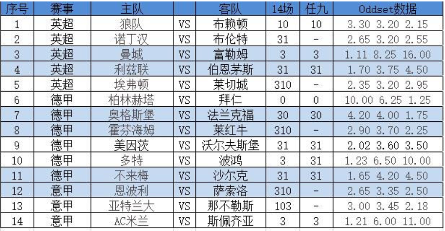 今天第二场关注德甲第13轮,排名第13的奥格斯堡主场迎战第5名的法兰克福。法兰克福本赛季双线作战表现不差,周中欧冠小组赛第6轮,客场2-1战胜马赛,法兰克福顺利晋级下一轮。德甲联赛中,法兰克福6胜2平4负积20分排名第5,争夺下赛季欧冠入场券的机会仍很大。但值得注意的是,法兰克福联赛+欧冠本赛季9胜3平6负,战平次数不多;奥格斯堡曾有主场击败拜仁的记录。本场比赛,结合过往交锋,走两头防大冷为好。