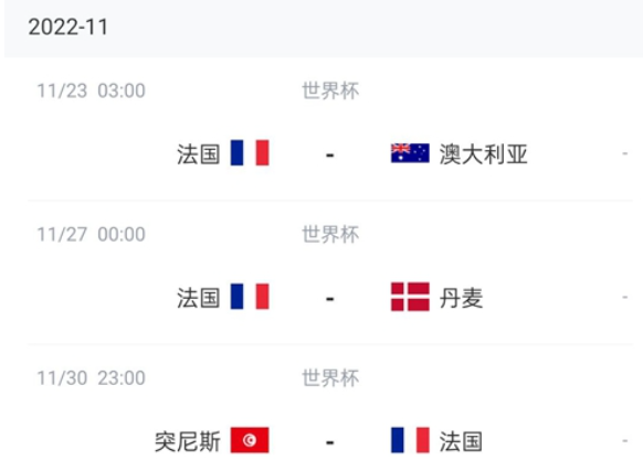 2022世界杯,卫冕冠军法国与澳大利亚、丹麦、突尼斯同分D组。