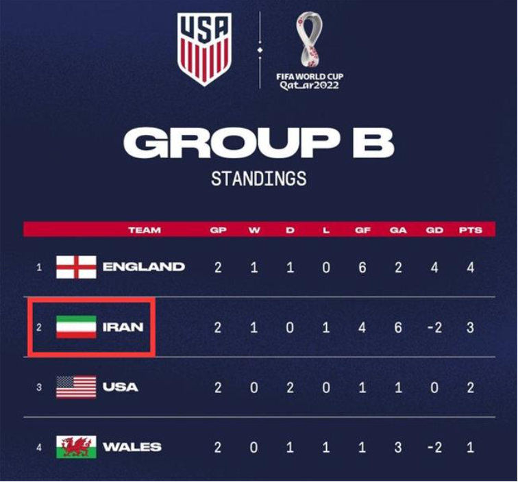 据称美国队此举是为了表达对伊朗妇女的支持,在24小时后,图片上的伊朗国旗将恢复成有国徽标志的版本。值得一提的是,伊朗国脚在小组赛首轮也通过开赛前不唱国歌的方式表达了同样的抗议。