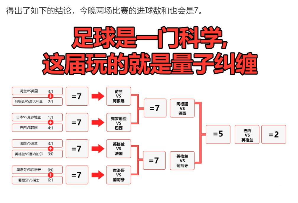 首页/ 赛事正文今天给大家聊一个我的最新发现,目前世界杯不是竞技足球,而是量子纠缠论的发现!通过科学的研究和总结,在世界杯16强的比赛中,同一个比赛日开赛的两场比赛,他们的各自进球数加起来的和是7个,那么根据量子纠缠, 在量子力学 里,当几个粒子在彼此相互作用后,由于各个粒子所拥有的特性已综合成为整体性质,无法单独描述各个粒子的性质,只能描述整体系统的性质,则称这现象为 量子缠结 或 量子纠缠 (quantum entanglement)。量子纠缠是一种纯粹发生于量子系统的现象;在经典力学里,找不到类似的现象。