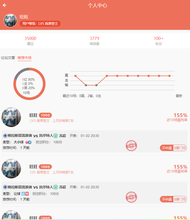 球掌门高手推荐:旺旺7场连红,洛杰高手榜第一