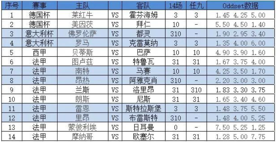 今天第一场关注德国杯第3轮,德甲第11名的美因茨主场迎战领头羊拜仁。上周末德甲,拜仁主场被法兰克福1-1逼平,冬歇期后遭遇3连平,目前仅领先第二名的柏林联合1分,球队状态不太好。美因茨上周末主场5-2大胜波鸿,冬歇期后1胜1平1负,仅1-2不敌多特。之前10次交锋,美因茨两次战胜拜仁,心理上不处下风。本场比赛,我看好拜仁有可能90分钟内继续不胜。临场将结合数据给出最终观点。