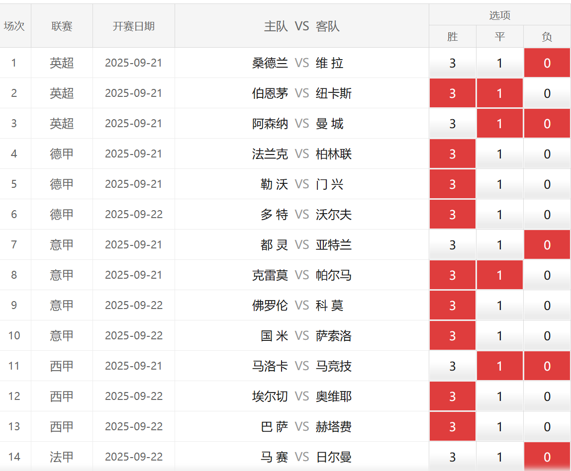周日的25135期的足彩14场比赛由传统的五大联赛组成;截止时间是2025年9月21日的20:30,敬请留意。