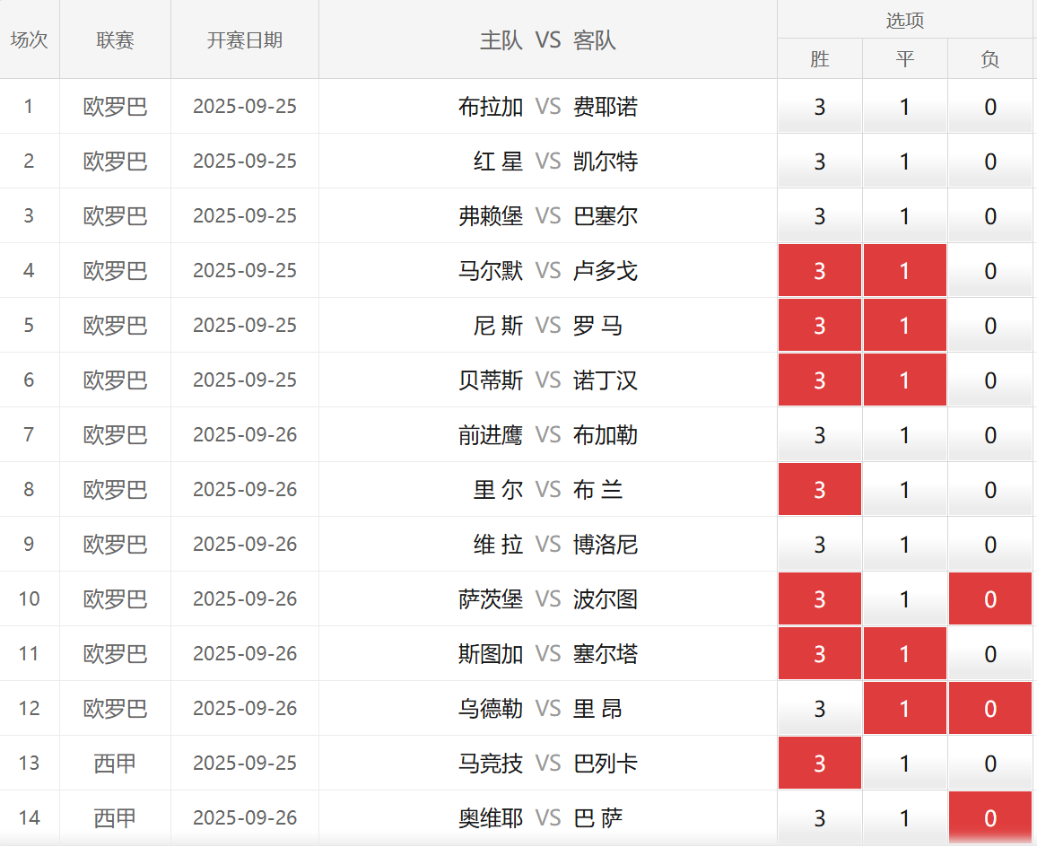 3,弗赖堡VS巴塞尔,欧罗巴杯联赛首轮比赛,弗赖堡在周末的联赛里,客场3:0云达不莱梅,联赛获得二连胜,目前2胜2负积6分排联赛第7名;巴塞尔在周末的瑞士杯第二圈里,客场1:1平,加时仍平通过点球3:2淘汰卡洛治晋级下一轮,近三场比赛保持不败,目前积12分排联赛第3名;两队从未在欧战里交过手,本场给出弗赖堡让半一球。胜负