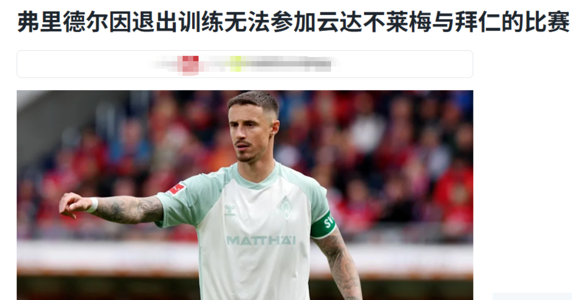 再加上长期伤缺的右路核心魏泽尔(十字韧带撕裂),可以说,不来梅整条主力防线的脊梁,在赛前被硬生生抽走了。