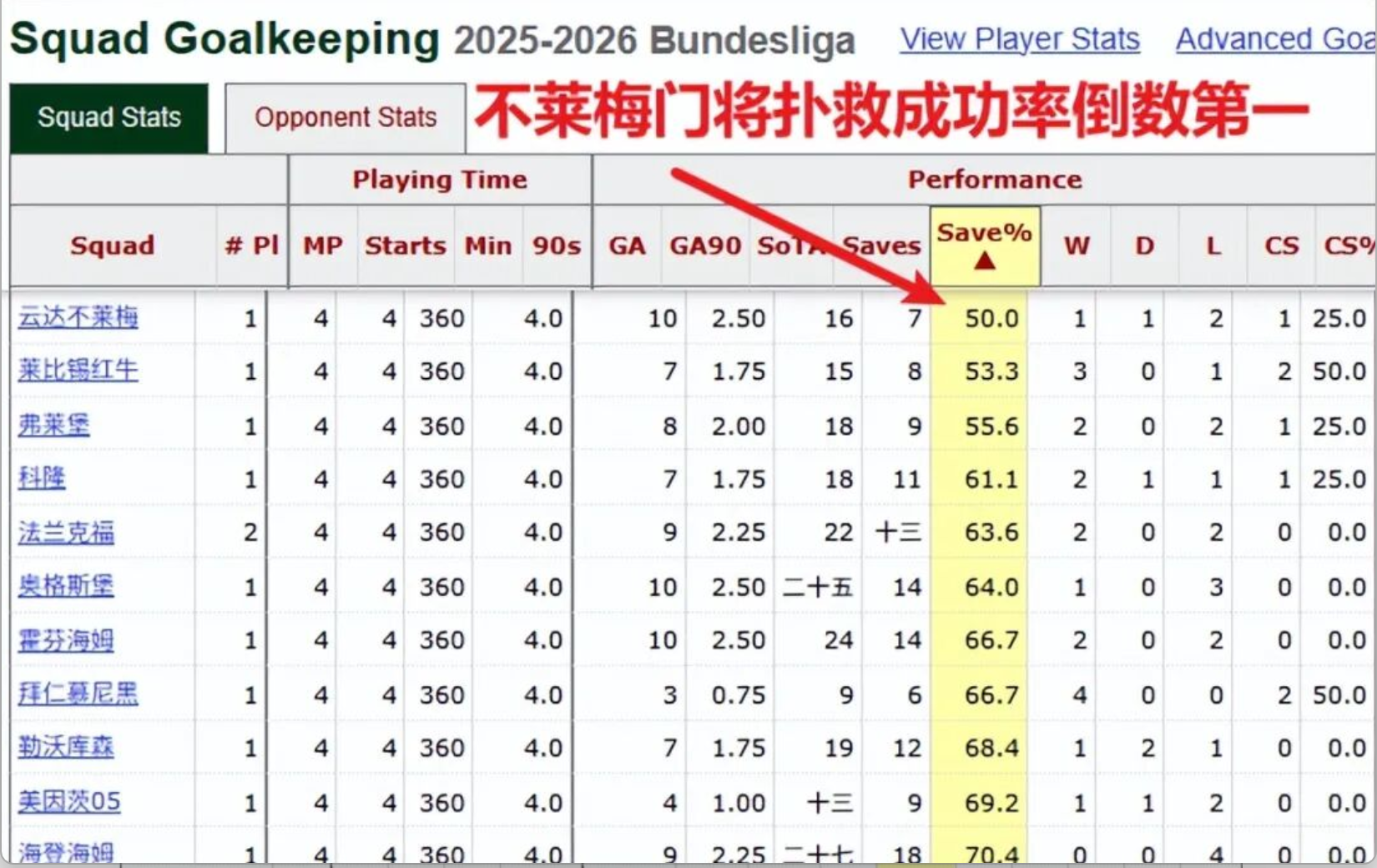 他们的年轻门将巴克豪斯,本赛季的扑救成功率仅为50%,是全德甲最低的。