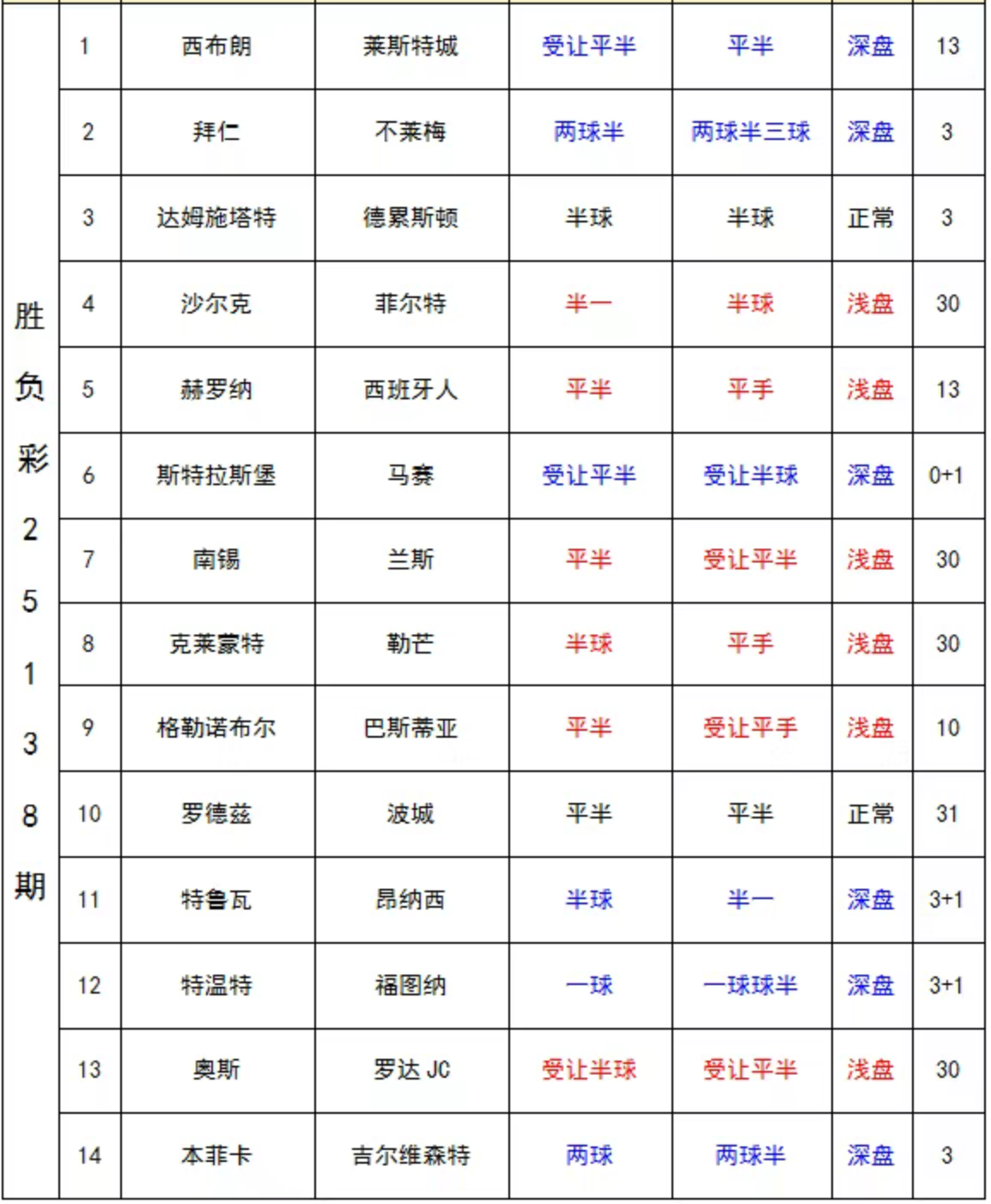 上期胜负彩没什么大冷,马尔默输球有小小的杀伤力,5万多奖金,今天周五,回归小联赛组合,十一假期前还有3期胜负彩,本期难度较大,还是简单说下前面几场比赛,大家谨慎参考,下面进入正题!