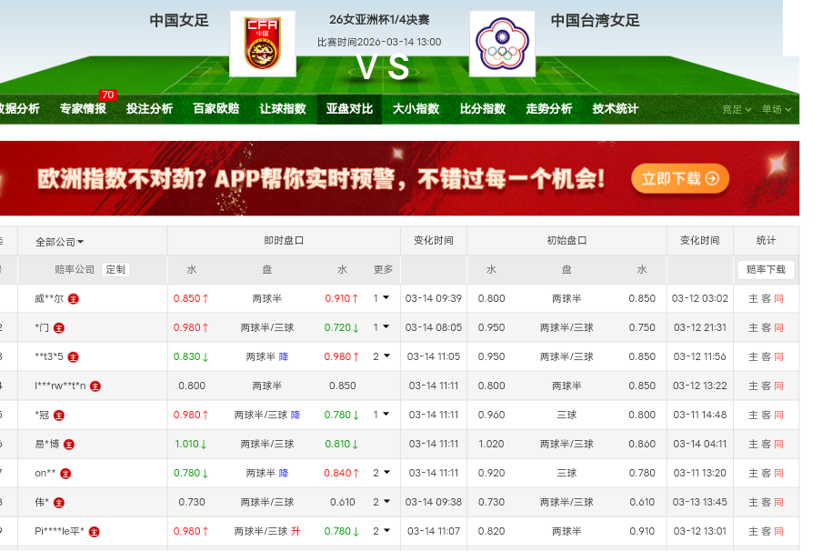 女足盘口示弱,台北二连胜,过往交锋女足大优,具备示弱的资本,倾向女足收腹台北。