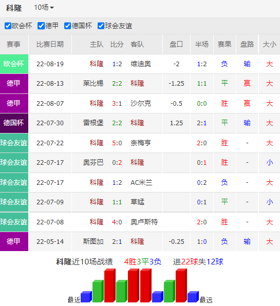 周日022 德甲 法兰克福VS科隆 2022-08-21 21:30