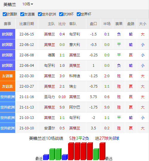 在欧国联A级小组赛上一轮中,意大利客场2比5惨败德国,目前球队1胜2平1负积5分,暂时位列小组第3位,出线形势并不明朗。意大利近4场比赛共丢7球,后防线存在不小的漏洞,容易给对手以可乘之机。好在球队进攻能力不俗,由因莫比莱、若日尼奥、维拉蒂和斯卡马卡等人组成的中前场,拥有强劲的门前战力。意大利小组赛上一次对阵英格兰,与对手打成0比0,本轮再次面对这个强大的对手,意大利又将面临苦战。