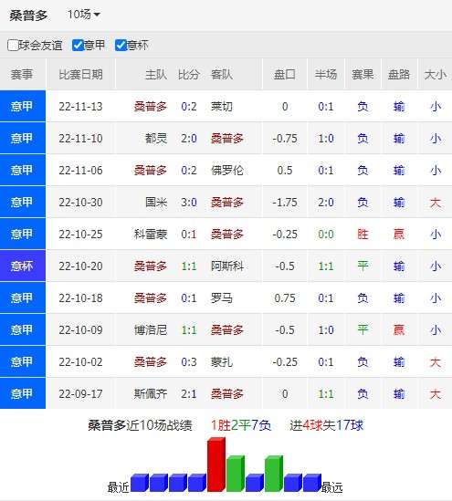 意甲中下游球队桑普多利亚15轮仅积6分排名第19,落后安全区7分。桑普多利亚是本赛季意甲进攻能力最差的球队,场均仅攻入0.4球。桑普多利亚遭遇意甲4连败,得失球0比9攻防俱差,包括0比2负于保级对手莱切。桑普多利亚热身赛取得3胜2平的不败战绩,但对手多为低级别联赛球队实力有限。
