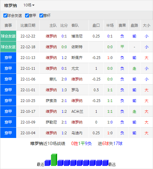 意甲中下游球队维罗纳15轮后仅积5分排名垫底,落后安全区8分。都灵本赛季意甲客场场均攻入1.25球,而主场场均进球数仅为0.86球。近10场各项赛事6胜3平1负胜率60%,包括主场2比1战胜卫冕冠军AC米兰。