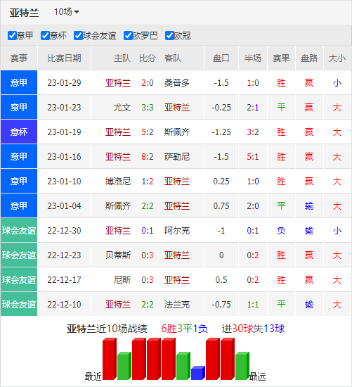 在上周末的联赛中,亚特兰大主场2-0战胜桑普多利亚,梅勒和卢克曼为球队建功。进入2023年后,亚特兰大的状态有明显的好转,正式比赛4胜2平保持不败,这6场比赛球队一共打进22球,场均3.67球,十分恐怖。主力前锋卢克曼表现神勇,本赛季已经打进14球,其中联赛12球。往绩看,亚特兰大面对国米已经多达8场不胜,球队上一次战胜国米还要追溯到18/19赛季;而上一次客场战胜国米更是要追溯到13/14赛季。