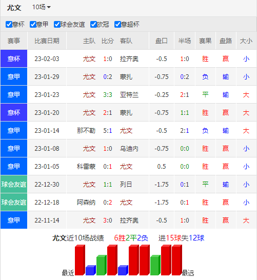 尤文图斯近期风波不断,在遭遇罚分后,又有传闻称可能会被剥夺联赛桂冠和欧战禁赛,加上高层集体离职,可以预见目前球队的军心正处于动荡阶段。冬歇归来后球队也丧失了此前的稳定性,最近3轮联赛1平2负共丢了10球,包括客场遭那不勒斯5球胖揍,防线漏洞百出。雪上加霜的是,博努奇、博格巴和米利克依然有伤在身,出战出场存疑。幸好球队在意大利杯击败拉齐奥,及时挽回信心。而球队阵容实力也足够雄厚,轮换出战也应能保证充足的战斗力,此仗球队还需稳住阵脚,尽量发挥出实力上的较大优势。