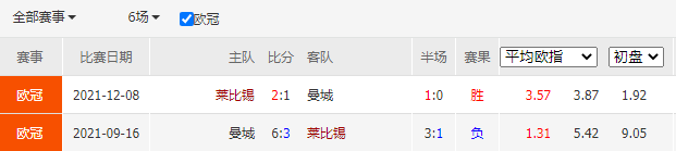 周三002 欧冠 莱比锡红牛VS曼彻斯特城
