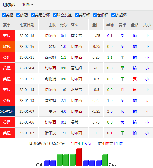 切尔西在本赛季可谓进退失据,在休赛期重金引援的情况下,球队表现不进反退,23轮过后只赢下8场联赛,遭遇到近些年来的最差战绩。更为不利的是,球队12个联赛客场只取得3场胜利,作客场均进球甚至只有0.83球,攻击端陷入萎靡。在上月中主场1球小胜水晶宫后,最近5场比赛切尔西只取得3平2负的表现,攻击端更是只有1球进账,在上周中欧冠不敌多特蒙德错失先机后,又在联赛主场输给联赛垫底的南安普敦,球队已经面临军心涣散的境地。利好的是球队近13次对阵热刺拿下9胜4平的表现,形成全面压制。