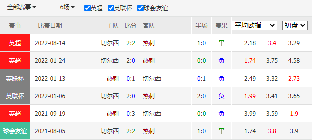 历史战绩:近6次交锋,托特纳姆热刺0胜2平4负。