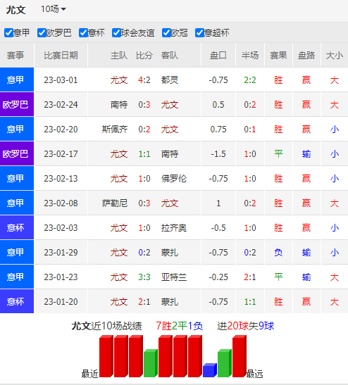 尤文图斯在经历扣罚分数后,球队能迅速调整心态,反而交出不错的表现,在整个2个月取得6胜1平的优异战绩,并晋级欧联杯16强。在周中的都灵德比中,球队主场逆转取得大胜,极大地鼓舞了球队的士气,但防守端的2个丢球依然要引起重视。因为在此之前的6场比赛,尤文图斯总共也只丢了1个球。本赛季尤文图斯在客场的发挥不算突出,11战6胜2平3负的得分效率甚至不如罗马城双雄和亚特兰大,不过球队至今联赛客场场均0.8个丢球,却能排在意甲客场前3位,可见防守表现是该队作客赢取积分的重要手段。至于头号射手弗拉霍维奇已经3场未能破门,此番的表现很可能会决定赛事走向。