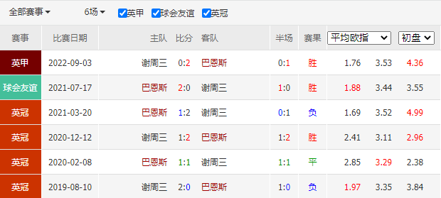历史战绩:近6次交锋,巴恩斯利3胜1平2负。