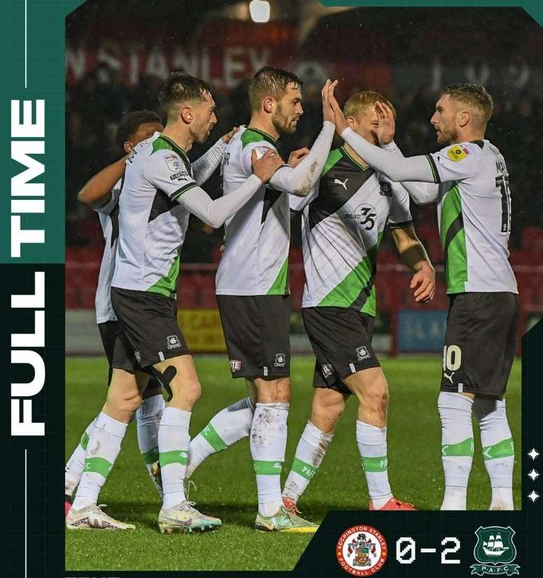 英甲第26轮的一场补赛中,普利茅斯2-0轻取十人阿克灵顿,重回积分榜榜首。开场仅14分钟,马特-布彻的进球就帮助客场作战的普利茅斯取得领先。下半场第51分钟,阿克灵顿中卫桑加雷吃到第二张黄牌,两黄变一红被罚下场,多打一人的普利茅斯第78分钟由格兰特破门锁定胜局,最终客场2-0轻取对手。随着谢周三的失利,球队重新来到英甲榜首,升级形势一片大好。