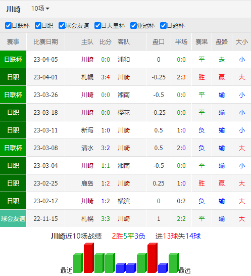 川崎前锋本赛季开局就遭遇到严重的伤病潮,从而对战绩造成直接影响,目前6轮联赛过后,只有2胜2平2负8个积分,排名不佳。在联赛中,该队的作客表现暂时强于主场,3战取得2胜1负,包括上个客场4-3击败札幌。球队近期表现稳健有余但进取不足,近4场杯赛联赛拿下1胜3平的不败表现,期间3个平局都是在主场打成0:0,更不利的是在最近5场比赛,川崎已经有4次被零封。利好的是球队中锋达米昂在客胜札幌的比赛中最后时刻替补复出,并在上仗联赛杯的赛事出战60分钟,正逐步恢复健康,将会是球队在攻击端的有力支撑。