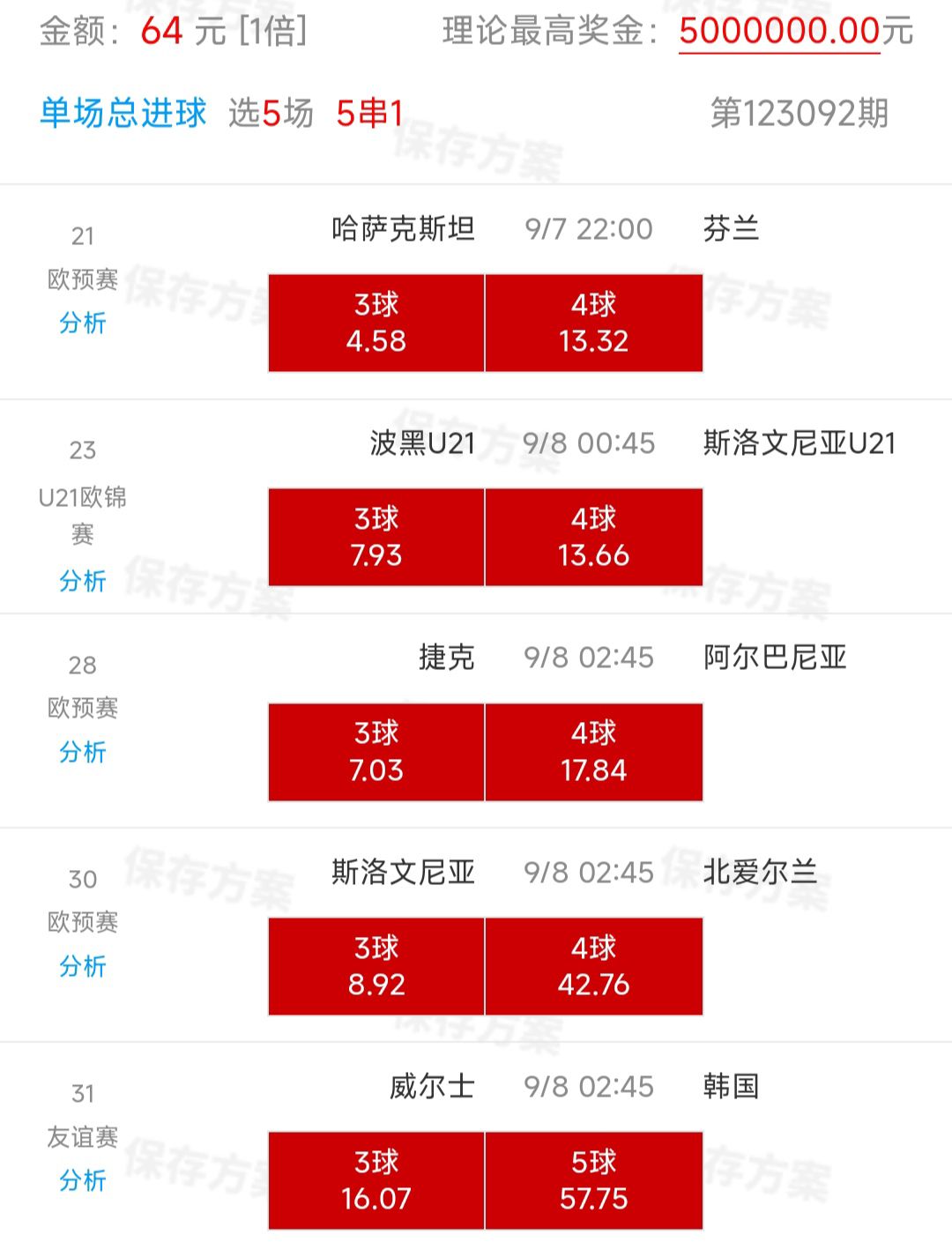 今天错开竞彩来张总进球数,