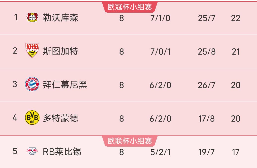 德甲拜仁再拿冠军真没意思了,斯图加特这个成绩有点闹眼子的意思,药厂多特各五成概率。
